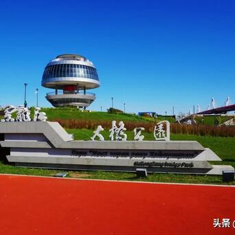 黑龙江大桥公园由地面观光区和观光塔两部分,矗立在黑龙江畔的观光塔与横跨在中俄界江黑龙江大桥相得益彰。